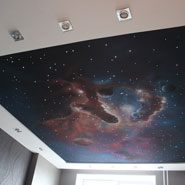 Потолки с рисунком имеют разную тематику: античные фрески, флористика, морская или космическая темы, абстракция, личные картины и фото. Выбор основывается на назначении комнаты, направленности дизайна, цветовой гамме интерьера. Важен выбор освещения: при использовании глянца натяжной потолок с фотопечатью может восприниматься иначе за счет отражения обстановки. Поэтому для сложных тематик мы рекомендуем матовое, сатиновое или тканевое основание.